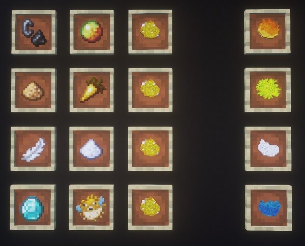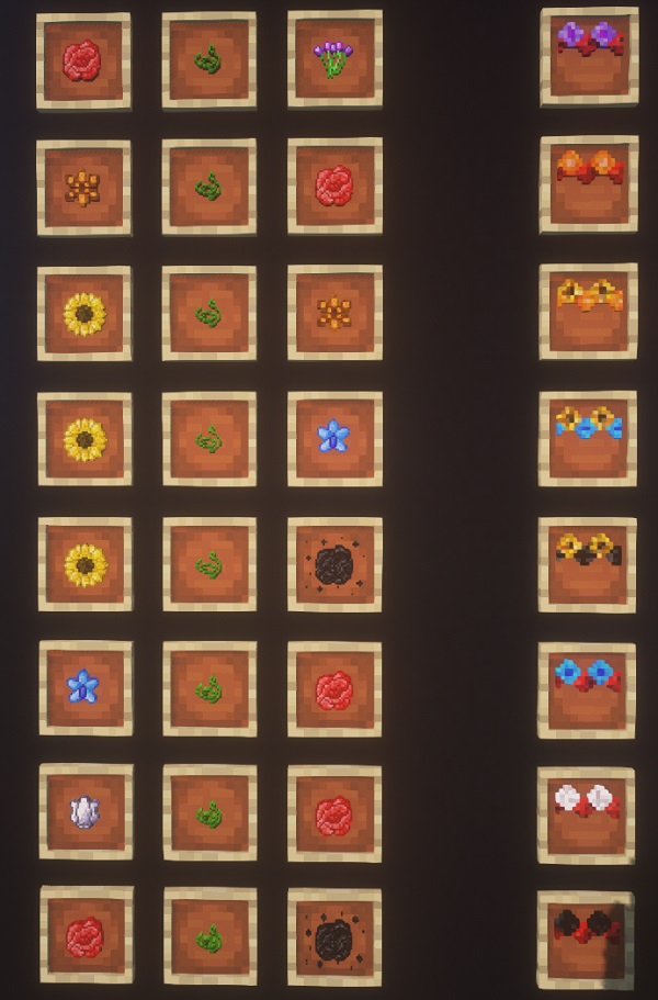 С помощью данной модификации вы сможете из цветов венки, которые могут быть помещены на голову игроку и давать, помимо декоративной красоты, полезные эффекты зелий.