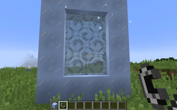Создайте портал из плотного льда аналогично порталу в ад и активируйте его огнивом. Чтобы попасть в измерение сфер в стиле нижнего мира и Края вам необходимо создать портал в тех самых измерениях. Пример показан на картинке ниже: