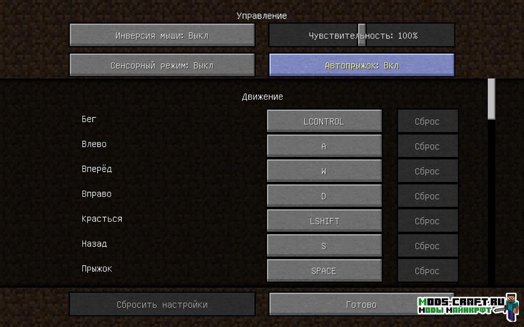 Мод StepUp очень полезный и позволяет подниматься по блокам без необходимости прыжка, облегчая игровой процесс и делая его тем самым более реалистичным. Вам будет доступно 3 варианта управления: