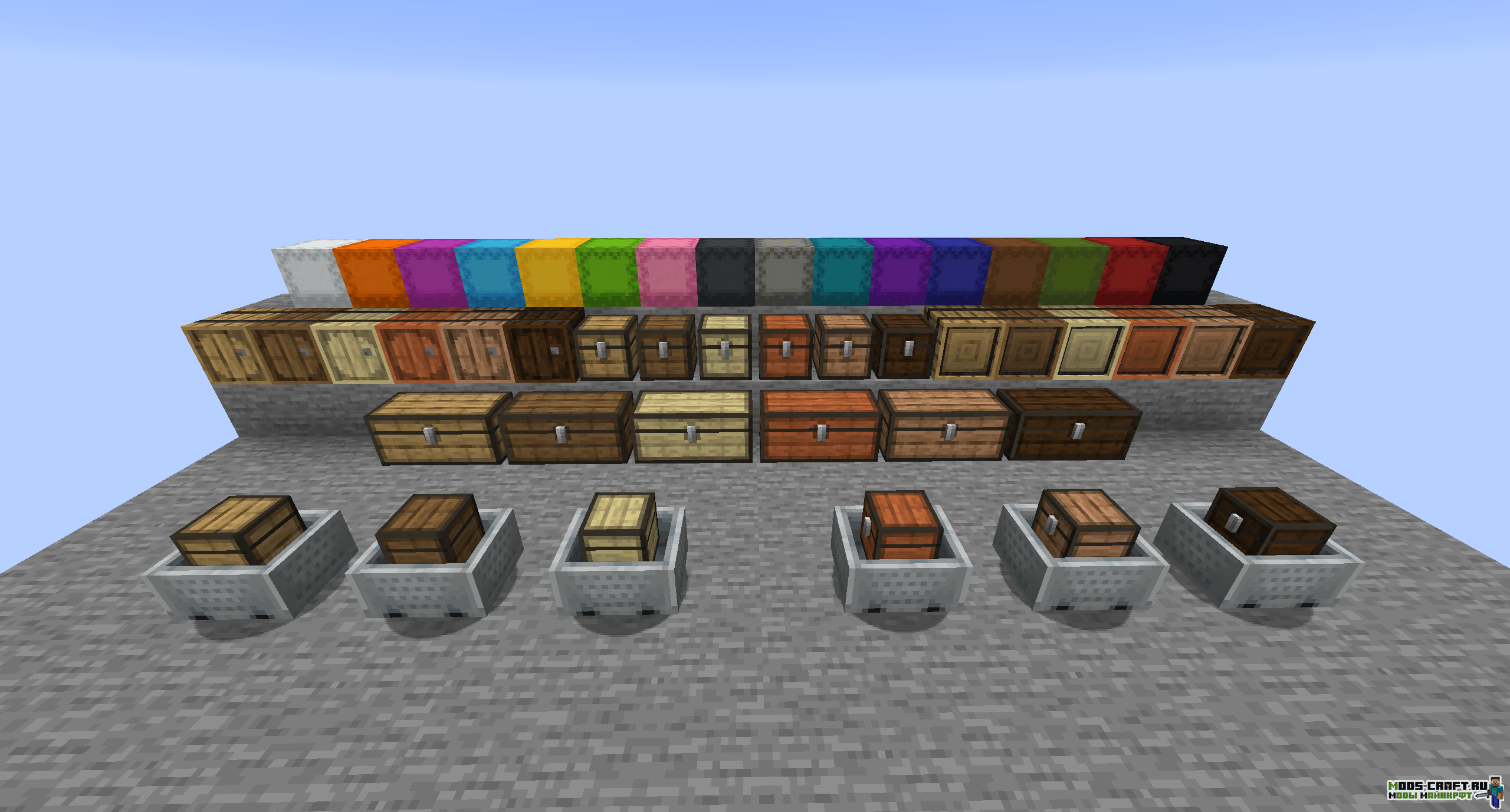 Мод Storage Overhaul полностью посвящён сундукам и хранилищам в Майнкрафт — появится возможность улучшать сундуки и бочки в плане вместимости, изготавливать их из всех типов дерева, а также создать прокачанную версию ящика шалкера. Кроме этого, вы сможете создать специальный тип бочки, которая способна хранить в себе лишь один тип предметов — она будет отображать иконку блока на передней панели и количество предметов в себе.