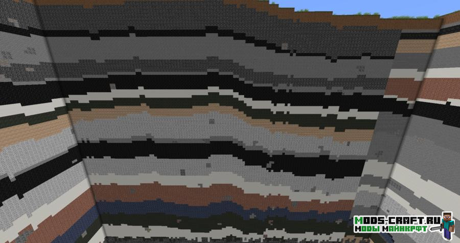Мод добавит в Майнкрафт новые типы камней, которые будут создавать слои в земной породе и генерировать красивые пейзажи. Всего таких камней 7 типов и подразделяются на 3 вида горных пород — все они декоративные.