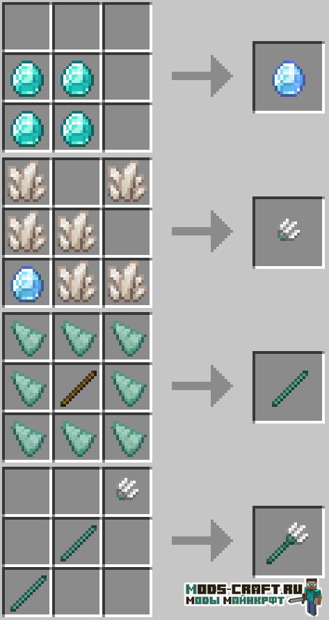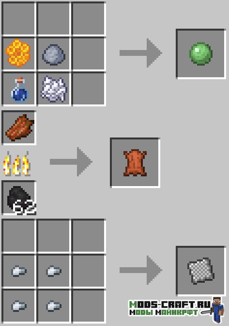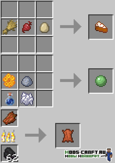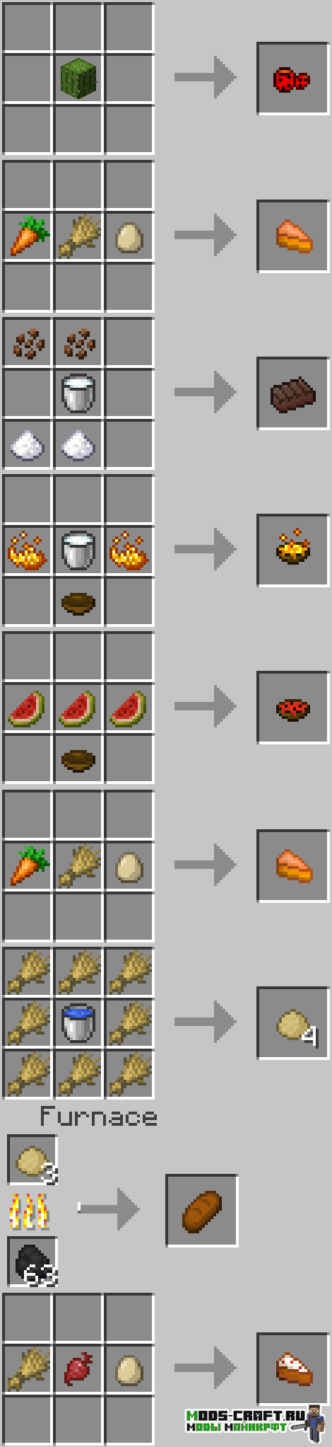 Мод добавит в игру новые рецепты, при помощи которых можно разбирать броню на отдельные компоненты, а также создать пару новых прикольных вещей, вроде трезубца и кольчужной брони. Кроме того вы сможете приготовить новую еду.