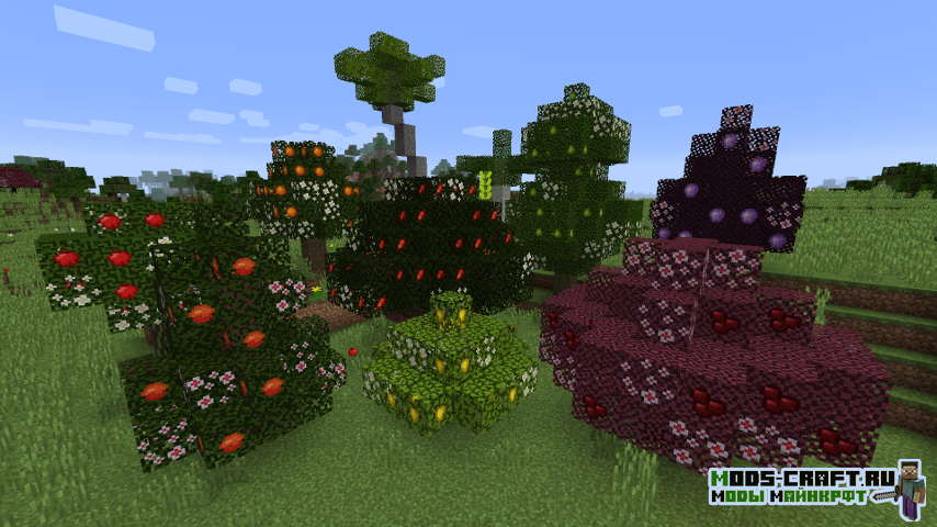 Глобальный мод, который разнообразит игру новыми блоками, инструментами, фруктами, деревьями, беседками, цветами, горшками, инструментами, ловушками и многим другим. Также вы сможете делать различные ловушки и препятствия для охоты в лесу, а в небе будут летать объёмные облака.