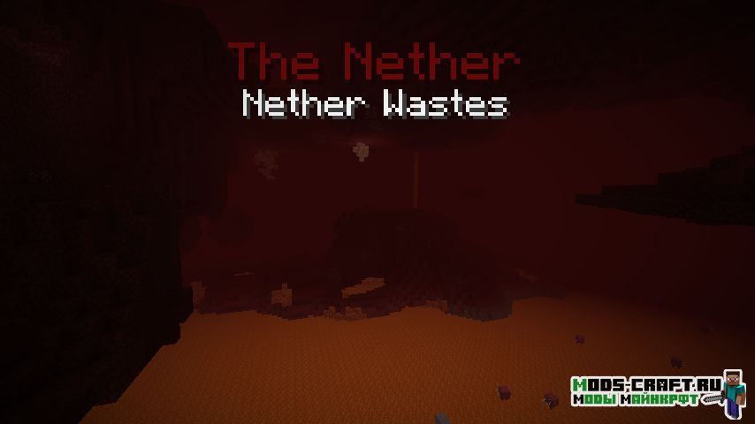 Теперь при смене измерения и биома на экране вы увидите всплывающую надпись с их названием по аналогии с различными RPG-играми. Вы сможете настраивать размер, расположение и цвет текста и заносить некоторые измерение/биомы в чёрный список. Поддерживаются большинство мобов на другие измерения и биомы.