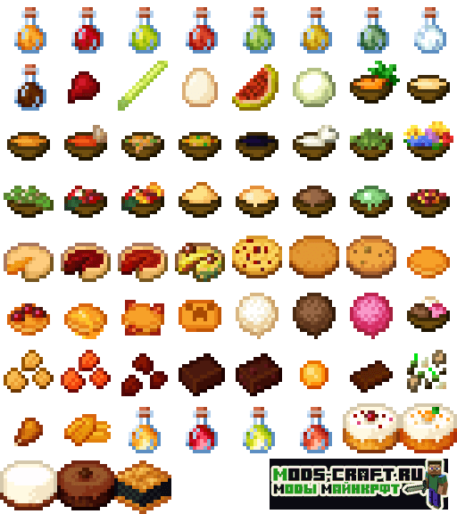 Vanilla Cookbook добавляет 80 видов новой еды и 5 тортиков в Майнкрафт, создаваемые из ванильных ингредиентов игры. Таким образом автор мода пытается реализовать больший потенциал для создания разнообразных продуктов питания.