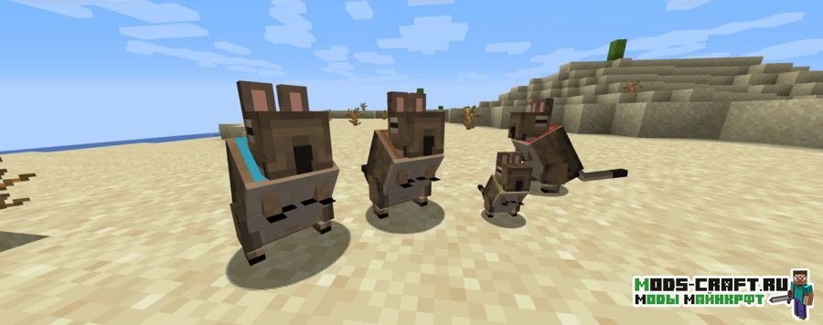 Vanilla Degus добавит милое создание Дегу — южноамериканский грызун, который будет естественным образом появляться в пустынях, саваннах и бесплодных землях. Они будут поедать траву и сухие кусты, интересуются зайцами и коровами, а также стараются избегать волков и диких кошек. Вы сможете приручить Дегу, дав ему траву или сухой куст. После приручения грызун получит красный ошейник.