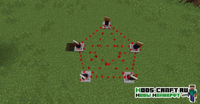 Wards добавляет в игру некий защитный алтарь, в который вы сможете поместить зачарованную книгу и лазурит. Он будет атаковать враждебных мобов и давать игроку бафы на площади действия алтаря. Чем сильнее будет зачарования и их уровень, тем сильнее блок будет атаковать врагов и давать более сильные эффекты игроку.
