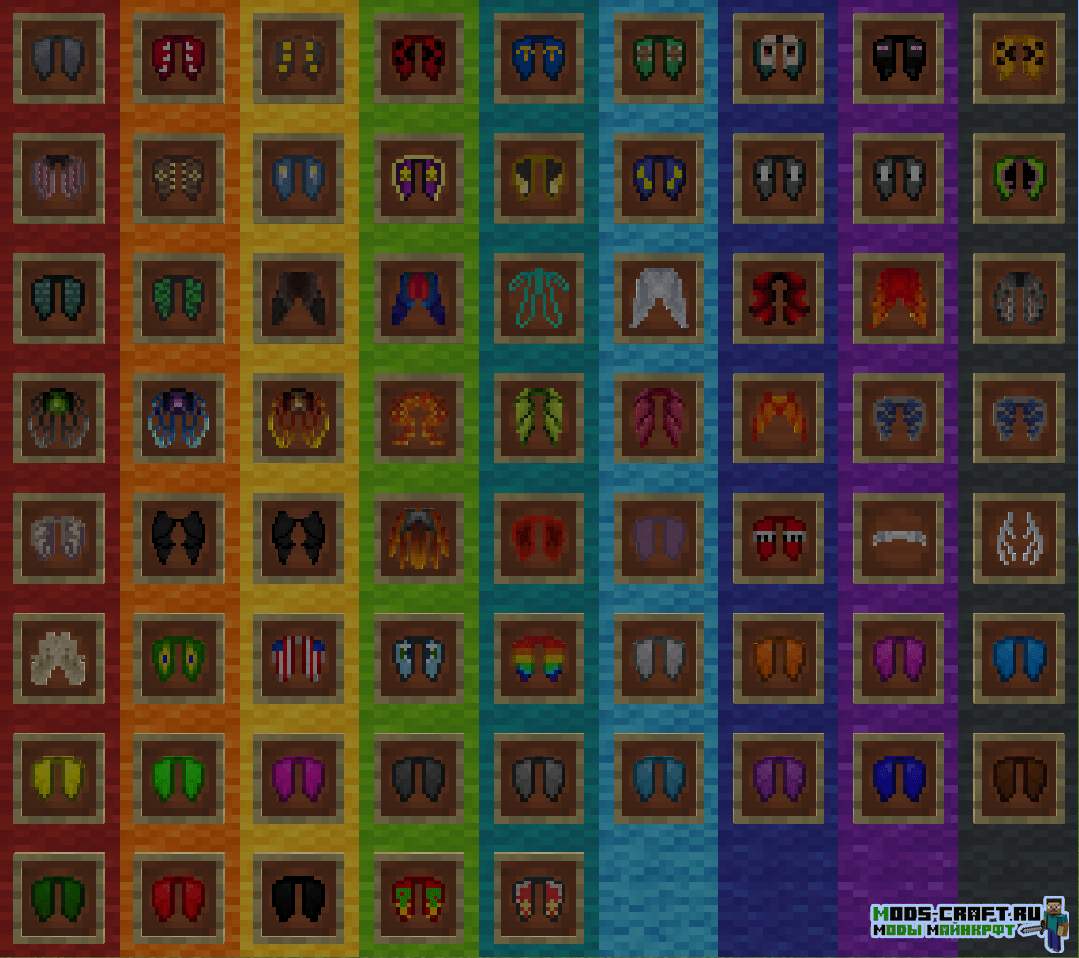 Мод Winged добавляет огромные количество красивых и разнообразных крыльев, которые можно смело использовать вместо оригинальных элитр.