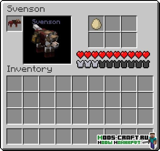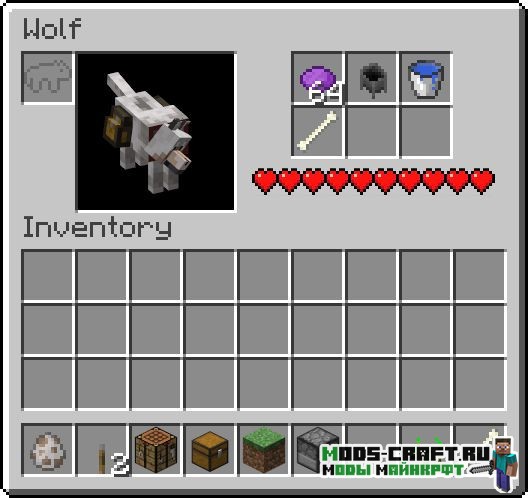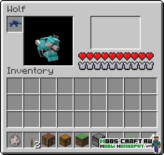 Теперь Ваш прирученный волк сможет носить броню и хранить в себе до 6 любых предметов. Тем самым он станет более защищённым и сможет носить ваши предметы.