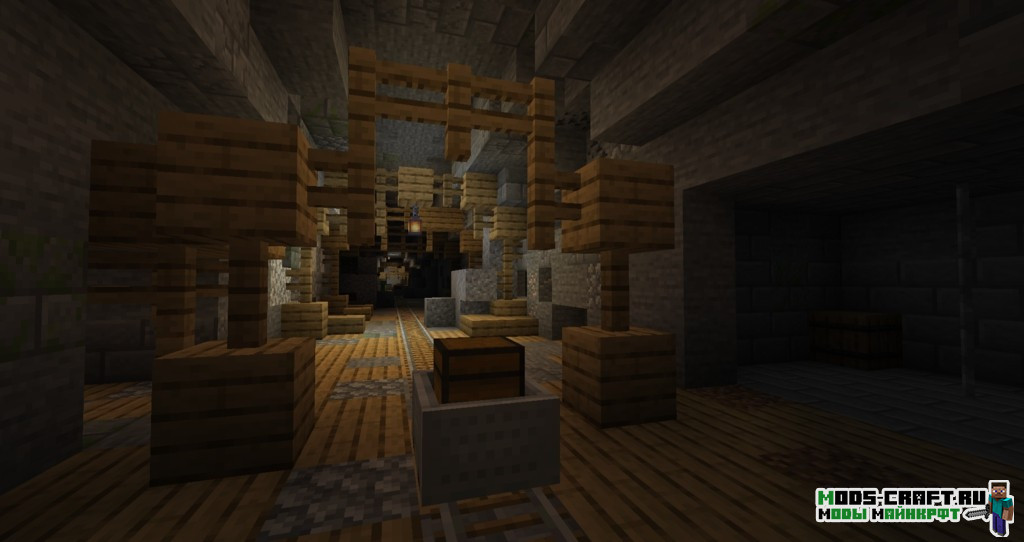 Мод полностью перерабатывает генерацию ванильных заброшенных шахт в Майнкрафт, превращая их из скучных прямолинейных и нелогичных ходов в динамичные, разнообразные сети туннелей с уникальным лутом, разбросанному в каждом тайном углу.