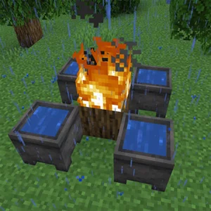 Мод Rain Be Gone Ritual даёт вам возможность остановить дождь в режиме выживания при помощи проведения специального ритуала. Для этого необходимо установить бревно и расставить 4 (можно и 8) котла вокруг него, после чего поджечь бревно. Далее произойдёт взрыв без повреждений, котлы наполнятся водой и дождь прекратиться. Пример расстановки котлов: Как установить Rain Be Gone …