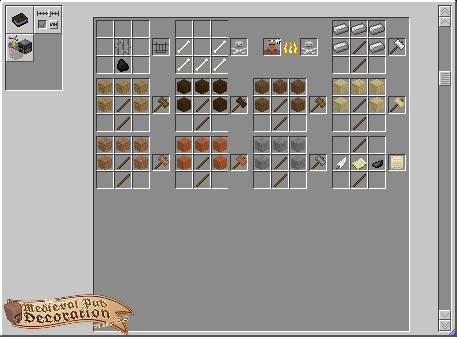 Этот мод вводит множество декоративных блоков, которые можно использовать как для строительства здания, так и для внутренней и внешней отделки. Важно отметить, что все эти блоки предназначены исключительно для эстетических целей и с ними нельзя взаимодействовать каким-либо функциональным образом, например, сидеть на стульях или хранить предметы в бочках.