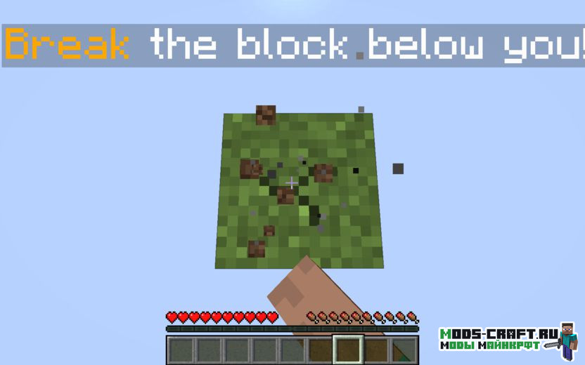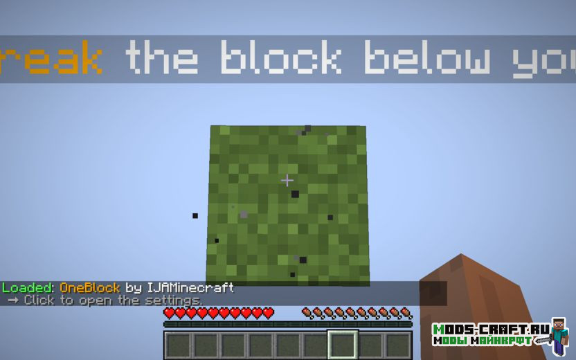 OneBlock — популярная карта для игры Майнкрафт, на которой игрокам предстоит начать своё выживание на одном блоке среди бесконечной пустоты. Для дальнейшего выживания начните ломать этот блок снова и снова, чтобы получить некоторые блоки, предметы и даже животных. После накопления ресурсов, мы сможем обустроить некоторую площадь вокруг: построить дом, создать ферму и огород, а также создать инструменты и оружие. Но не забывайте, что при добычи блока могут выпасть враждебные мобы!