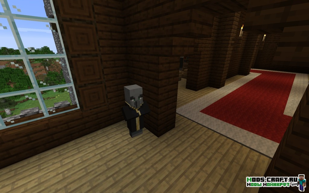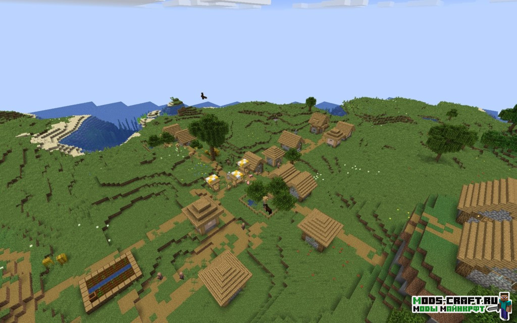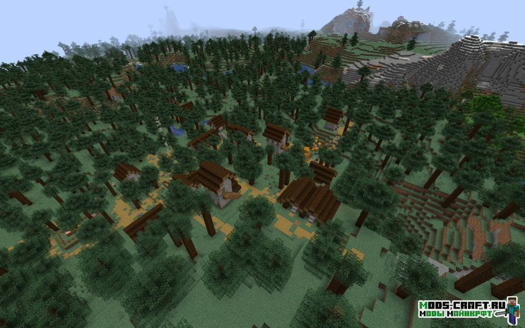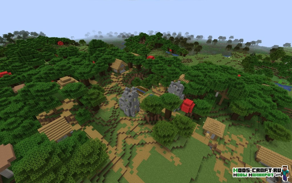 В данном сиде вы появитесь в лесном биоме, где необходимо пройти немного на север по координатам «350, -800«, чтобы найти башню бандитов и четырёхэтажный особняк. Внутри особняка есть скрытная лестница (её координаты: 383, 70, -848), забравшись по которой вы сможете найти : 1 Золотое яблоко и 3 редстоуна. будьте осторожны, особняк охраняется огромной толпой скелетов.