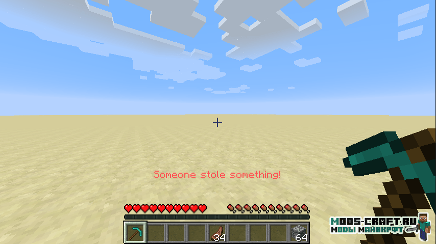Мод позволяет вам красить предметы у других игроков, для этого подойдите ему за спину и нажмите ПКМ. За одну такую кражу у моба будет отобран предмет брони и оружия, а у игроков выбранный вами предмет из инвентаря.