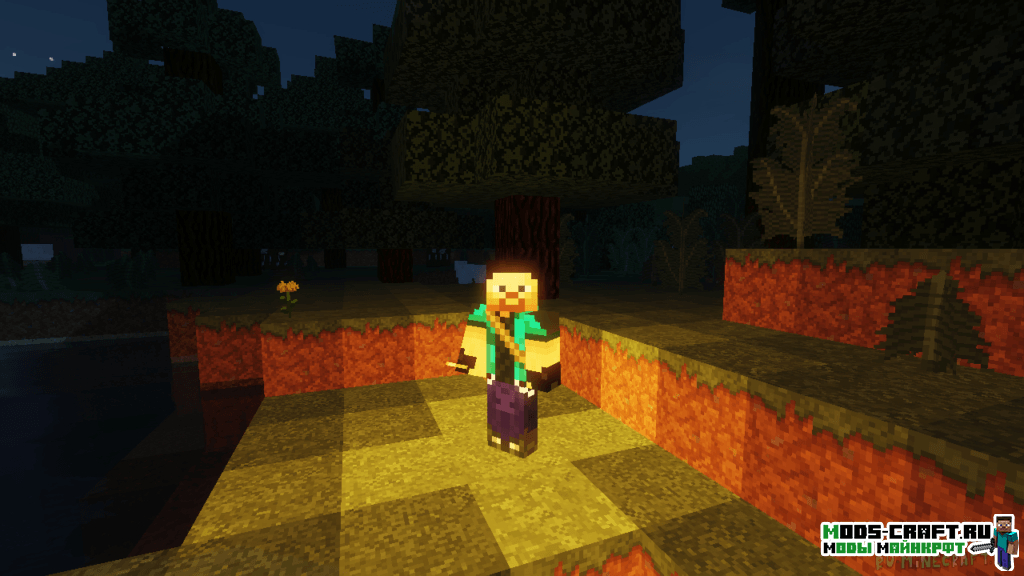 - DynamicLights — динамическое освещение (факел, лава, светокамень светятся прямо в руках)