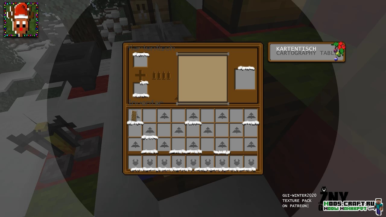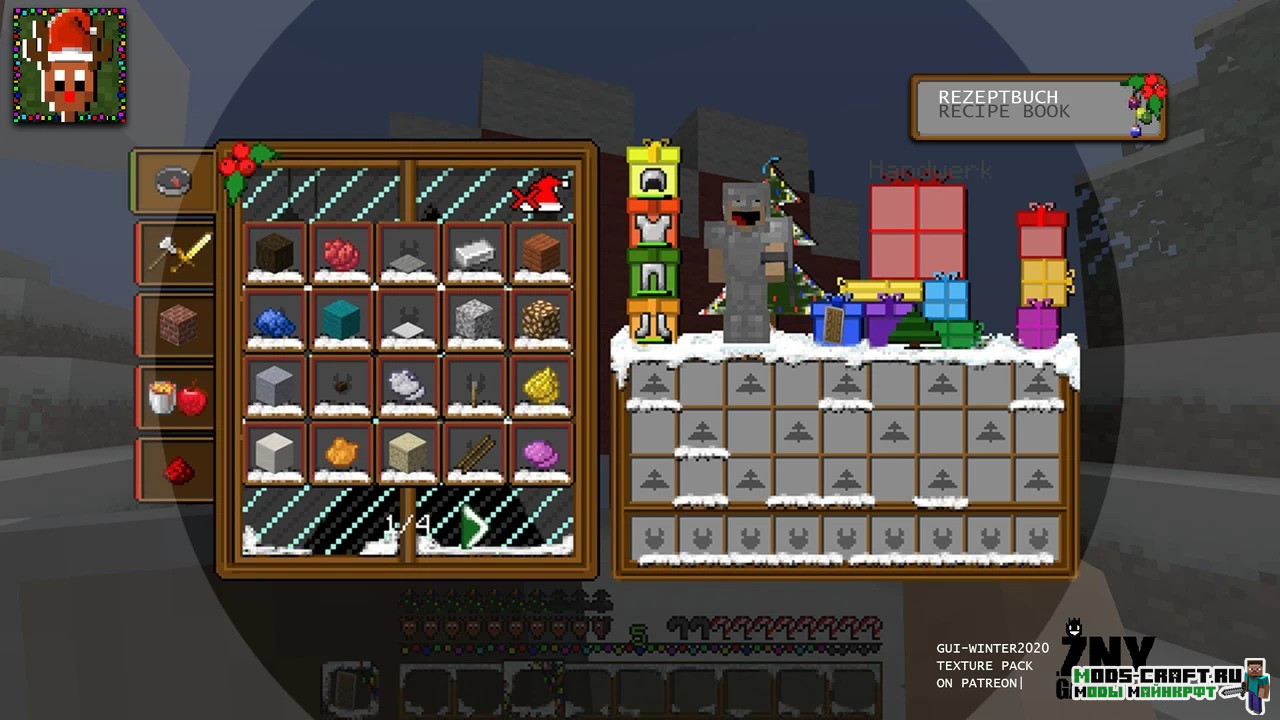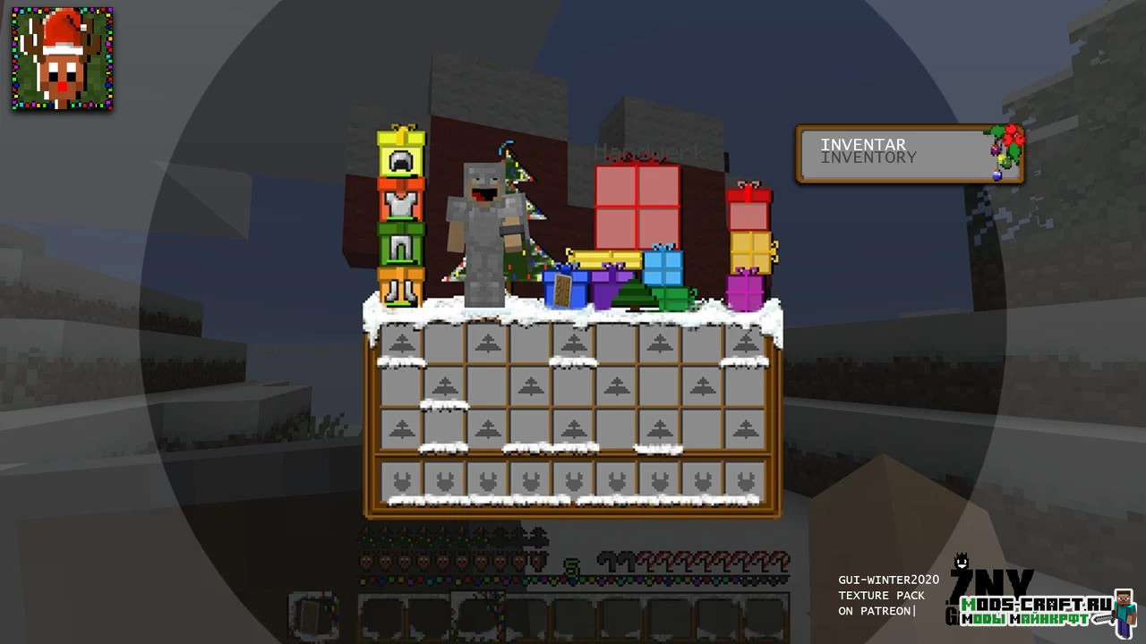Winter 2020 — новогодний текстурпак, изменяющий вид игрового интерфейса, инвентаря игрока и меню крафта, а также главного меню под новогодний стиль. Изменением подвергнутся также все иконки и некоторые блоки, делая мир игры снежным. Не обойдётся и без добавление гирлянд, подарков и новогодних ёлок.