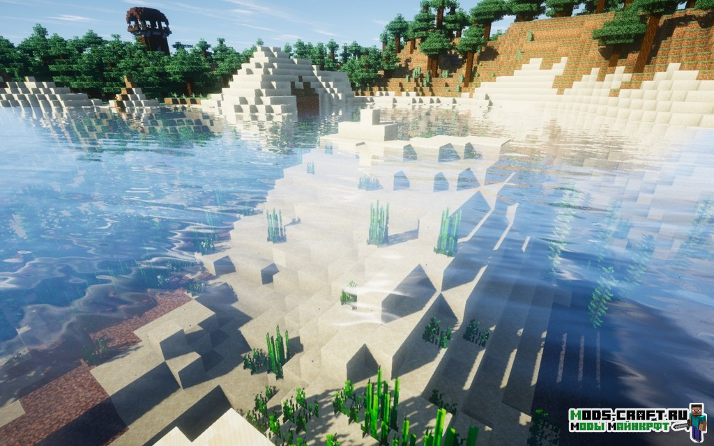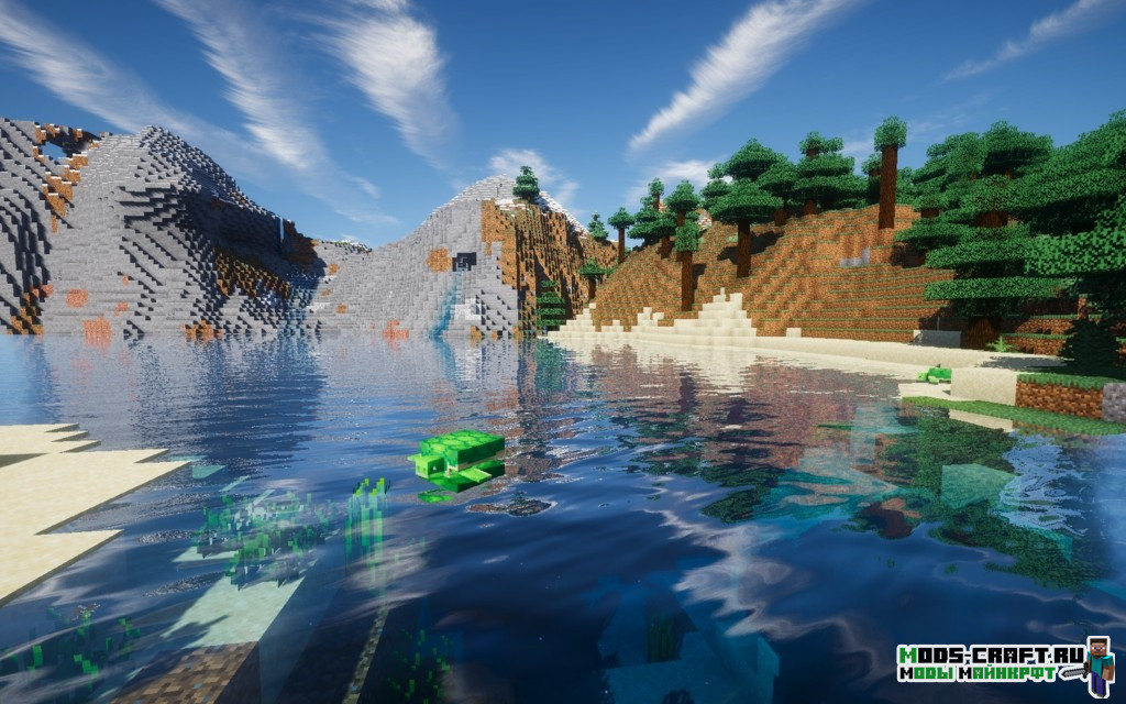 Шейдер Ebin является одним из лучших шейдер-паков для Майнкрафт в плане графики и эффектов. Если его установить, то вы увидите, как красиво стало — начиная от освещения, воды, звёзд на небе и заканчивая мягкой тональностью. Благодаря тому, что в шейдере есть передвижные облака, то солнце не будет слепить как в многих других проектах. Хочу отметить также, что здесь нет сильного размытия и излишнего контраста, а играть очень приятно.