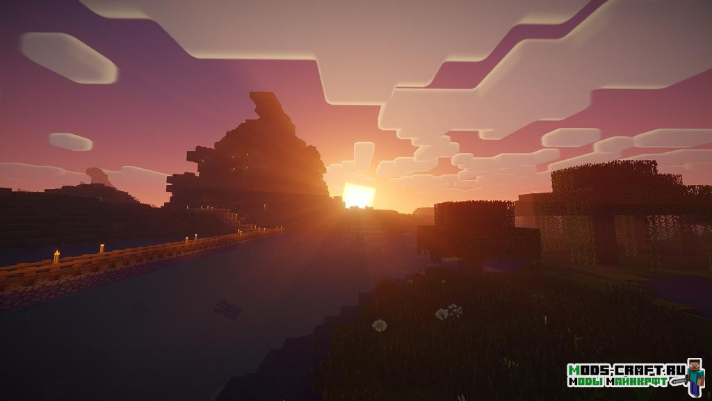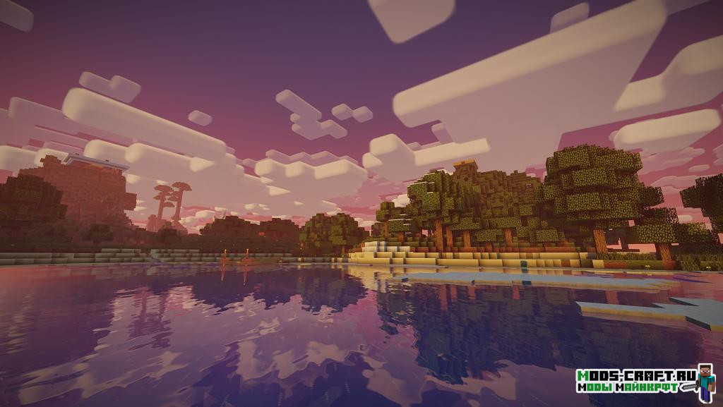 Неплохой и довольно новый шейдерпак от RRe36, который сочетает в себе хороший баланс производительности и всевозможных настроек. Он поддерживает ад и край, добавляет красивую воду, объёмный туман и свечение, эффект ветра на листве и динамические тени. Доступны версии Lite, Medium, High, Ultra, их можно сменить прямо в настройках шейдера.