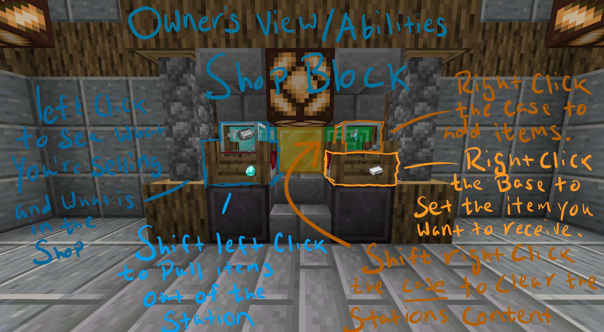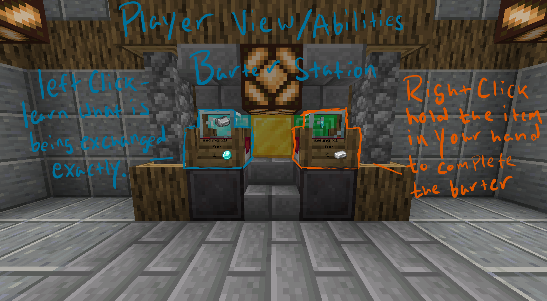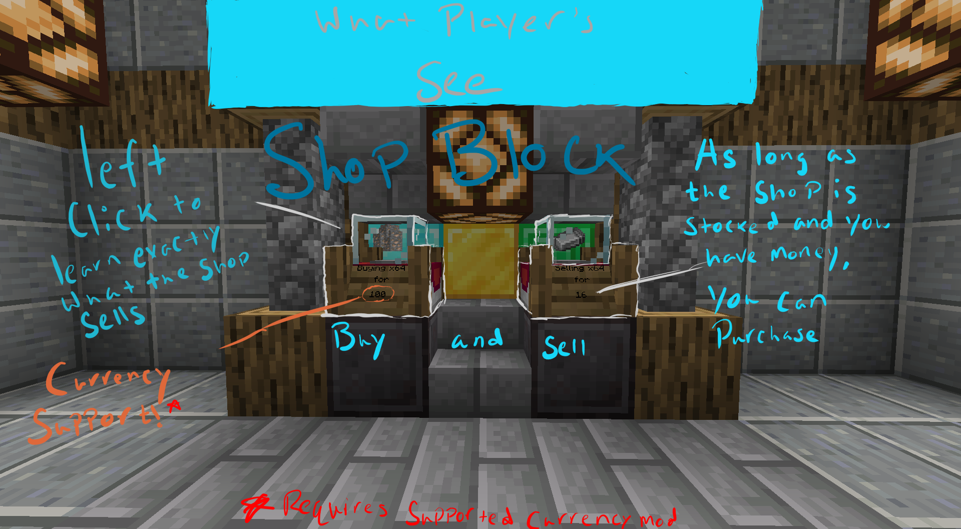Чтобы начать использовать этот мод, просто активируйте его на сервере или в одиночной игре. Затем, установите блоки-магазины в удобных местах и установите условия для сделки. Вы сами решаете, что продавать и что хотите взамен.