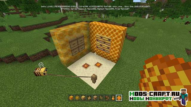 - Новый моб — Пчёлы (днём летают и собирают нектар, а ночью спят в улье, либо на пасеки);
