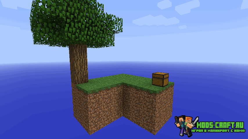 В самом старте будет дан небольшой набор предметов в виде сундука, в нём ведро с лавой и блок льда. Также на острове есть небольшое деревце, с которого и стоит начать свой путь!