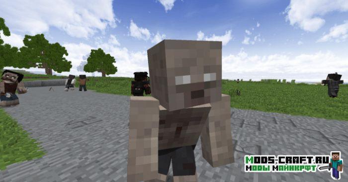 Ресурспак Tissou’s Zombie добавляет отличные тематические текстуры про зомби и делает в Майнкрафт атмосферу зомби апокалипсиса распространения вируса. Зомби станут выглядеть как зараженные вирусом люди, все в крови и грязной одежде, а ночью у них будут светиться глаза оранжевым цветом — это довольно страшно, но мы же этого и хотели, не правда ли?!