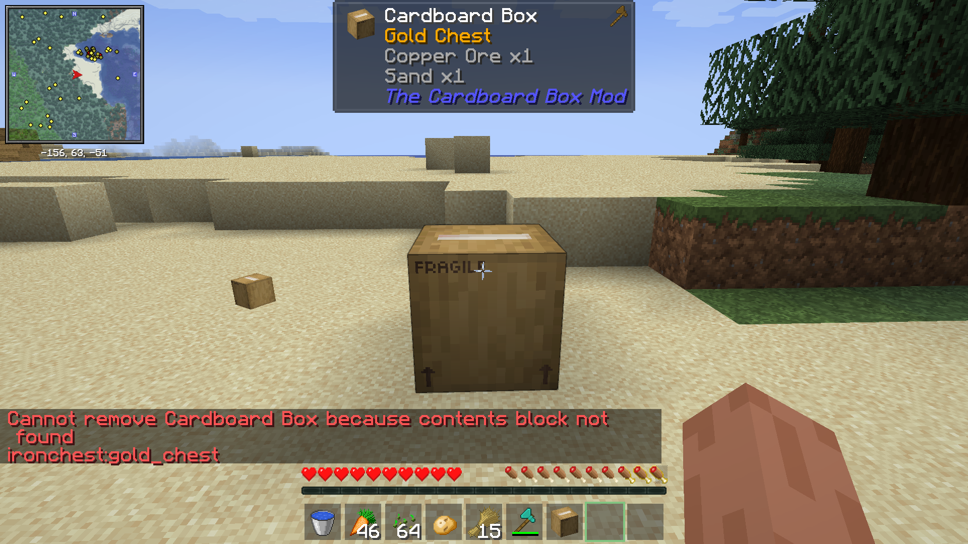 Создайте картонную коробку и упакуйте в неё нужные вам блоки, будь то сундук, печь или даже спавнер. Затем свободно перемещайте эту коробку в нужное место без беспокойства о потере содержимого. Как только вы доберётесь до нужной точки, распакуйте картонную коробку, и ваши блоки будут на месте, ни один предмет не будет утрачен.