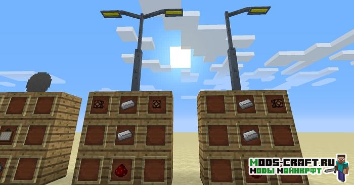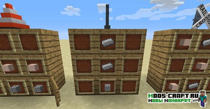 Модификация добавит дорожные элементы и знаки из Road Stuff, а также некоторые собственные вещи, вроде железнодорожных переездов и уличных фонарей. С помощью такого мода можно строить в Майнкрафт собственные автодороги, железнодорожные пути с элементами знаков, разметок, освещения и сигнальные элементы вроде светофоров.