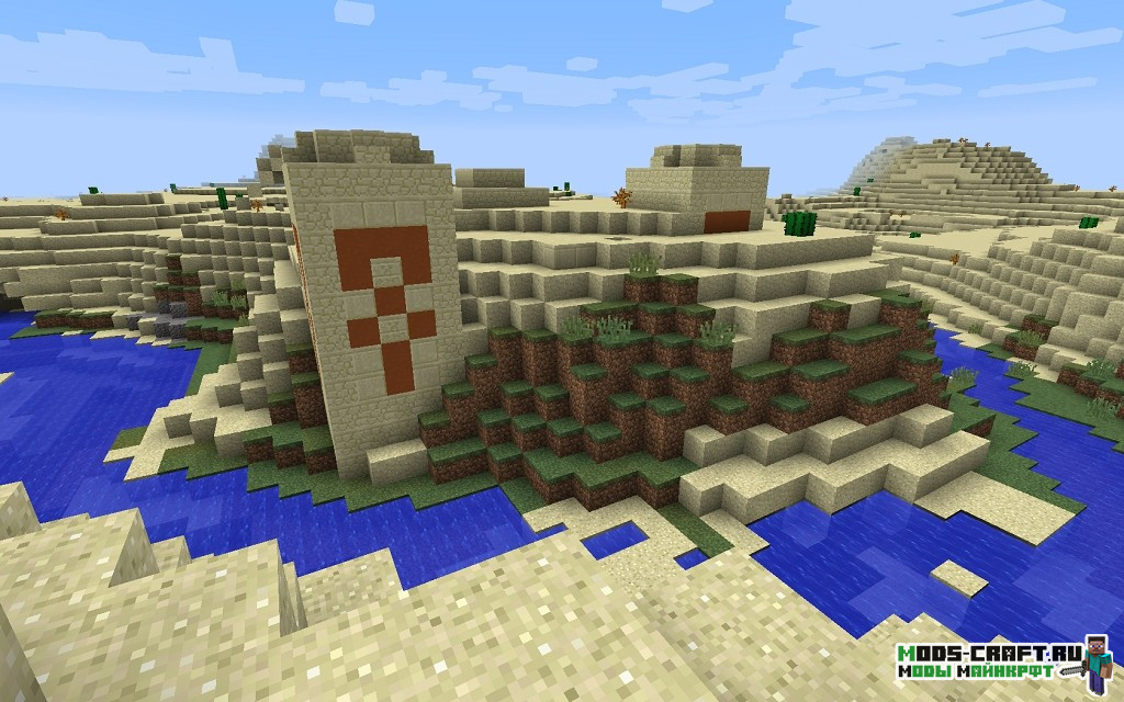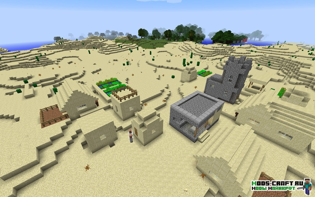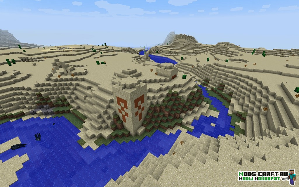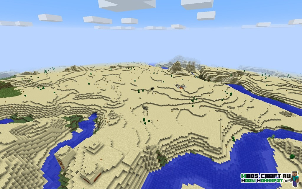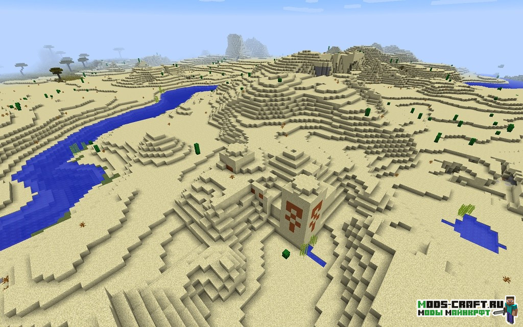 Очень интересный сид, где вы появитесь прямо перед первой пирамидой, находящейся через холм. Пойдя налево от неё можно отыскать ещё одну пирамиду, а если идти чуть правее то наткнётесь на деревню с закопанной рядом в песке пирамидой. Также если следовать на восток по координатам -700, 70, -162 то можно отыскать ещё одну деревню.