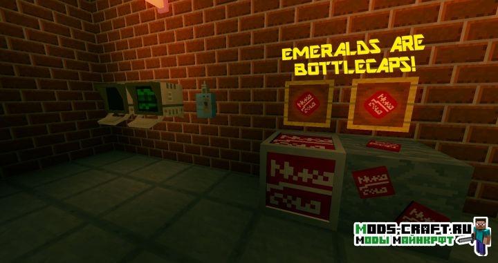 Довольно интересный и проработанный ресурспак, который добавит 3D-текстуры моделей и вещей из игры Fallout в Minecraft! Создайте свою силовую броню, автомат с ядер-колой, лазерный пистолет и многое другое.