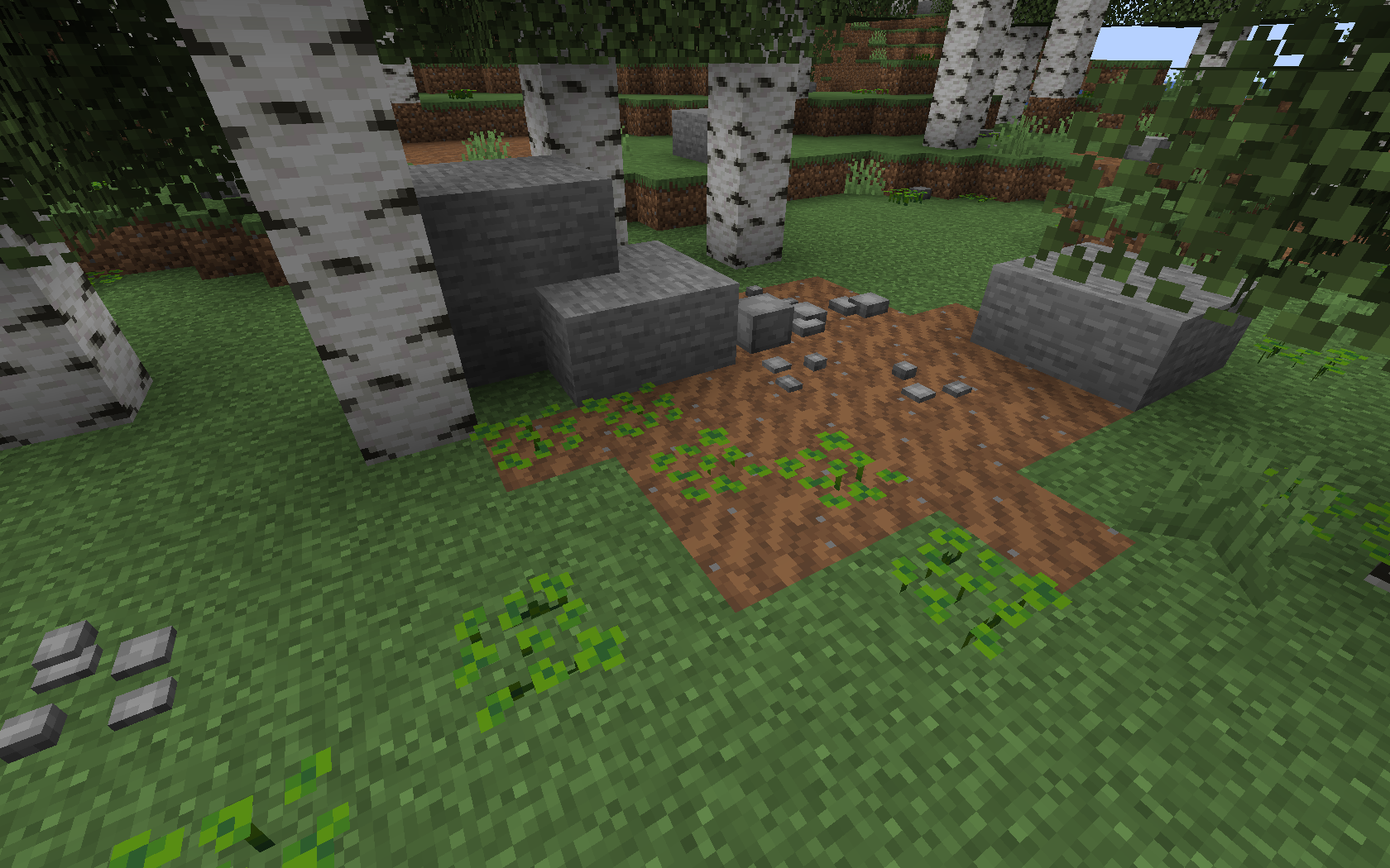 - появляются валуны из разных камней ,в зависимости от биома;