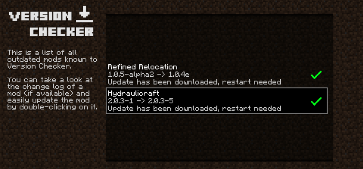 - Version Checker упрощает процесс обновления модов, позволяя игрокам быть в курсе последних версий и получать уведомления о доступных обновлениях. Это позволяет быстро и легко обновлять установленные модификации и получать новые функции и исправления ошибок.