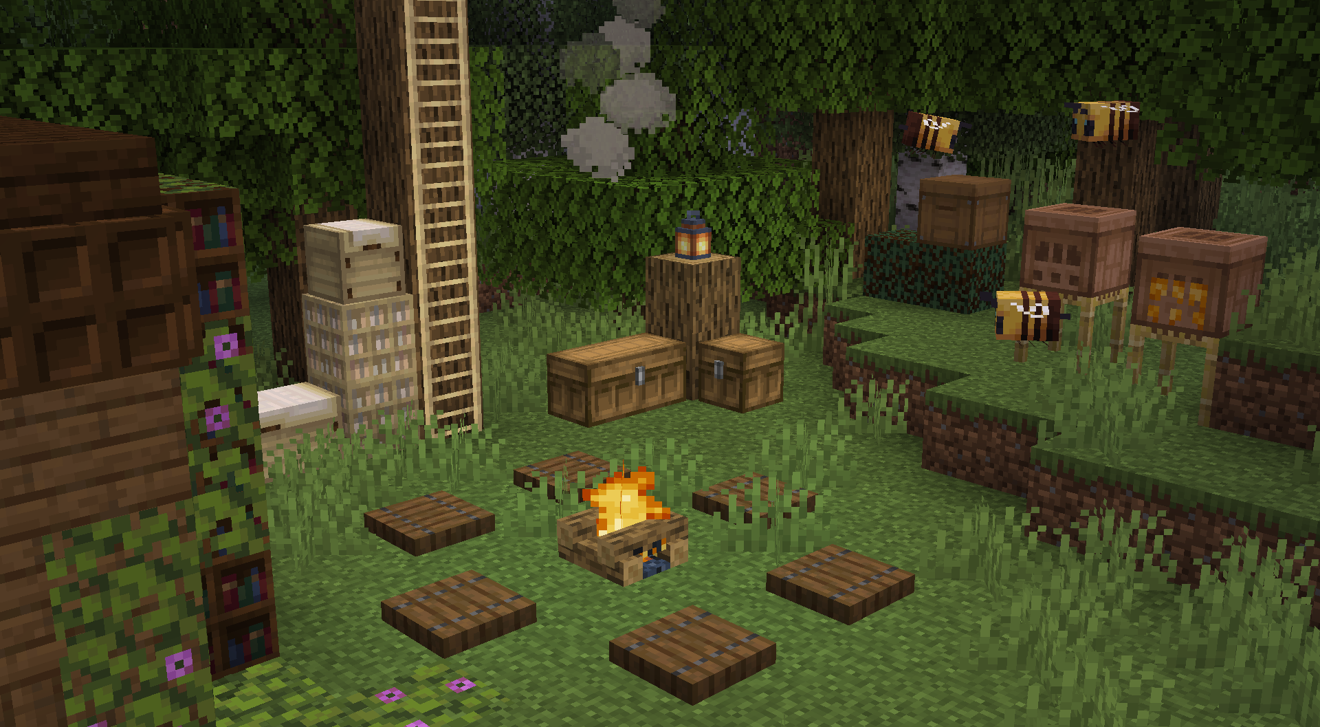 Кроме того, мод добавляет разные варианты классических блоков, таких как сундуки, книжные полки и ульи, выполненные из разных видов древесины. Это придает игровому миру больше разнообразия и возможностей для декорации.