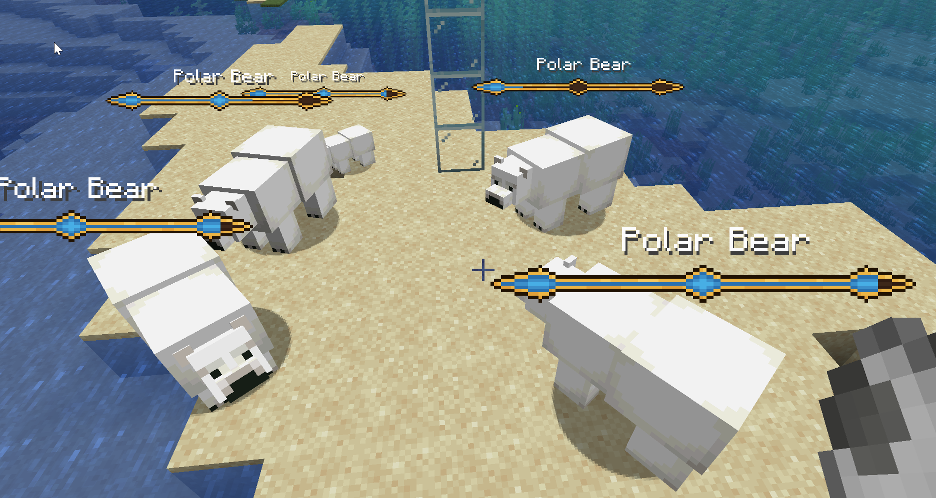 Полезный и удобный мод, который показывает шкалу жизни для всех мобов. Интерфейс шкалы можно изменить, зажав английскую H, в набор входит 6 видов. Вы сможете рассчитывать свои силы при атаке монстров.