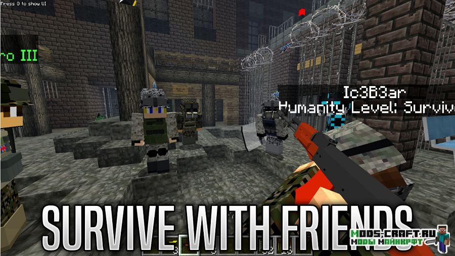 Заводите новых друзей в борьбе за выживание, используйте различный арсенал огнестрельного оружия и испытывайте эмоциональные события Zombie Apocalypse в майнкрафт, которые могут возникнуть в любой момент. Начинать вы будете в опасной тюрьме, откуда выбраться будет очень непросто. ВЫ сможете объединиться в команды, а также предать её ради наживы, делай всё что угодно в разрушенном мире зомби.