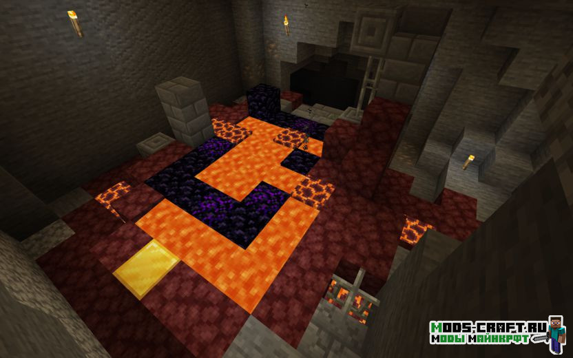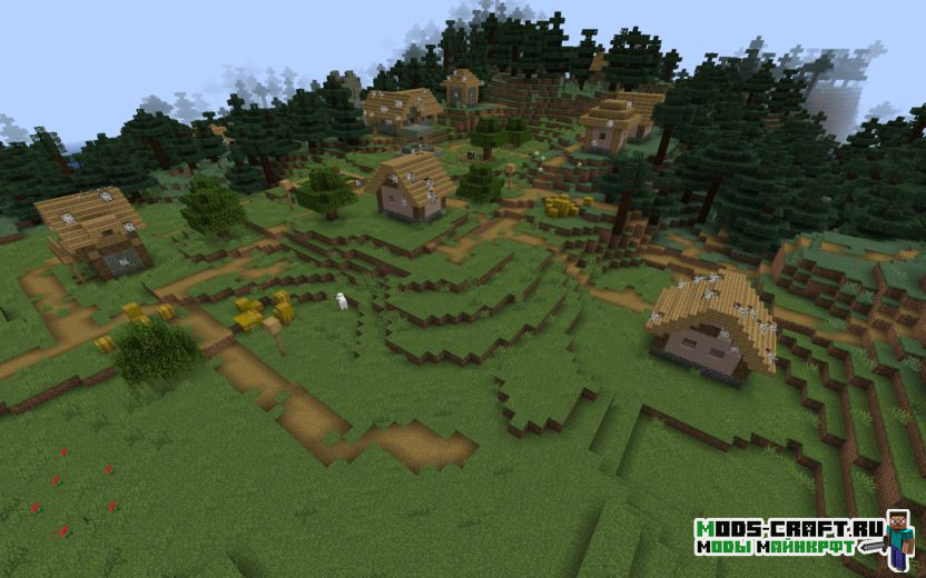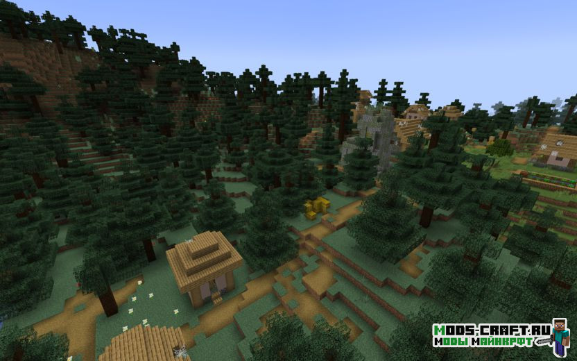 Сид переносит вас на равнину рядом с зомби-деревней, вокруг которой густая тайга, реки и небольшие горы. Совсем неподалёку есть разрушенный портал, но находится он под землёй, а чуть ниже него расположена заброшенная шахта.